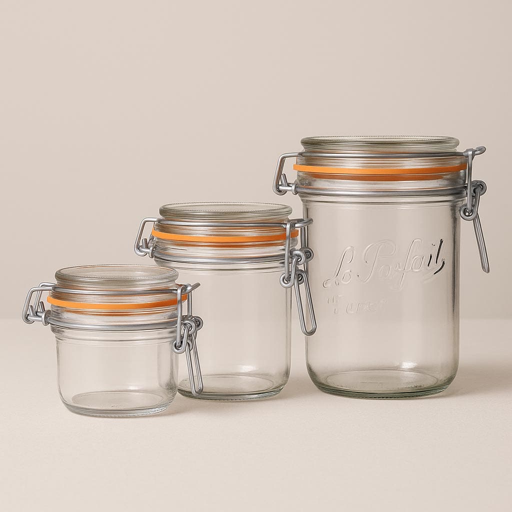 Seria "Super Terrine" nga Le Parfait përfaqëson mjeshtërinë autentike franceze dhe ofron një zgjidhje cilësore për ruajtjen dhe prezantimin e ushqimeve. Ky kavanoz klasik me kapak me grep dhe relievin "Le Parfait Super" është projektuar posaçërisht si kavanoz me kthesë, duke lejuar nxjerrjen e lehtë të tortave, kekëve dhe ëmbëlsirave të tjera. Gjithashtu, është ideal për reçele, konserva mishi dhe sallam, si dhe për një gamë të gjerë të përhapjeve të shijshme. Me një kapacitet prej 125 deri në 1000 ml, "Super Terrine" ofron mundësi të ndryshme përdorimi. Kapaku i qelqit që vjen bashkë me kavanozin dhe unaza karakteristike gome portokalli sigurojnë një vulë të sigurt dhe hermetike.