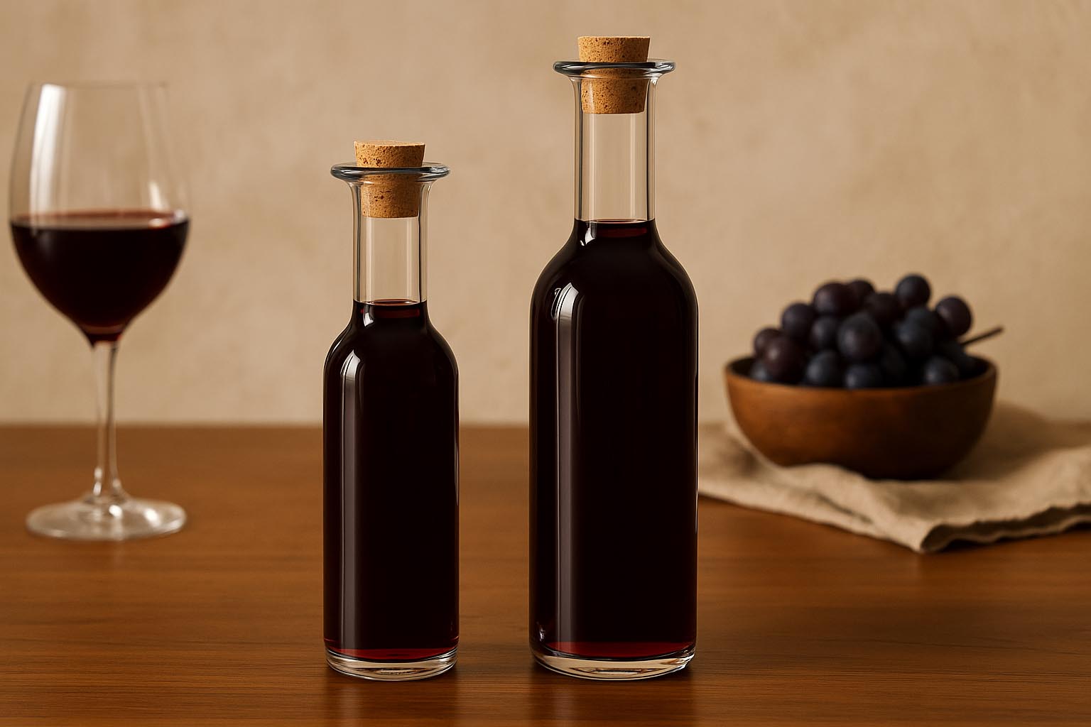 Disponohen në madhësitë 250 ml, 500 ml dhe 750 ml, duke ofruar për çdo përdorim madhësinë e përshtatshme – nga mostrat ekskluzive deri te ruajtja klasike e verës. Forma e tyre e rrumbullakët siguron një pamje elegante dhe lehtësi në përdorim.