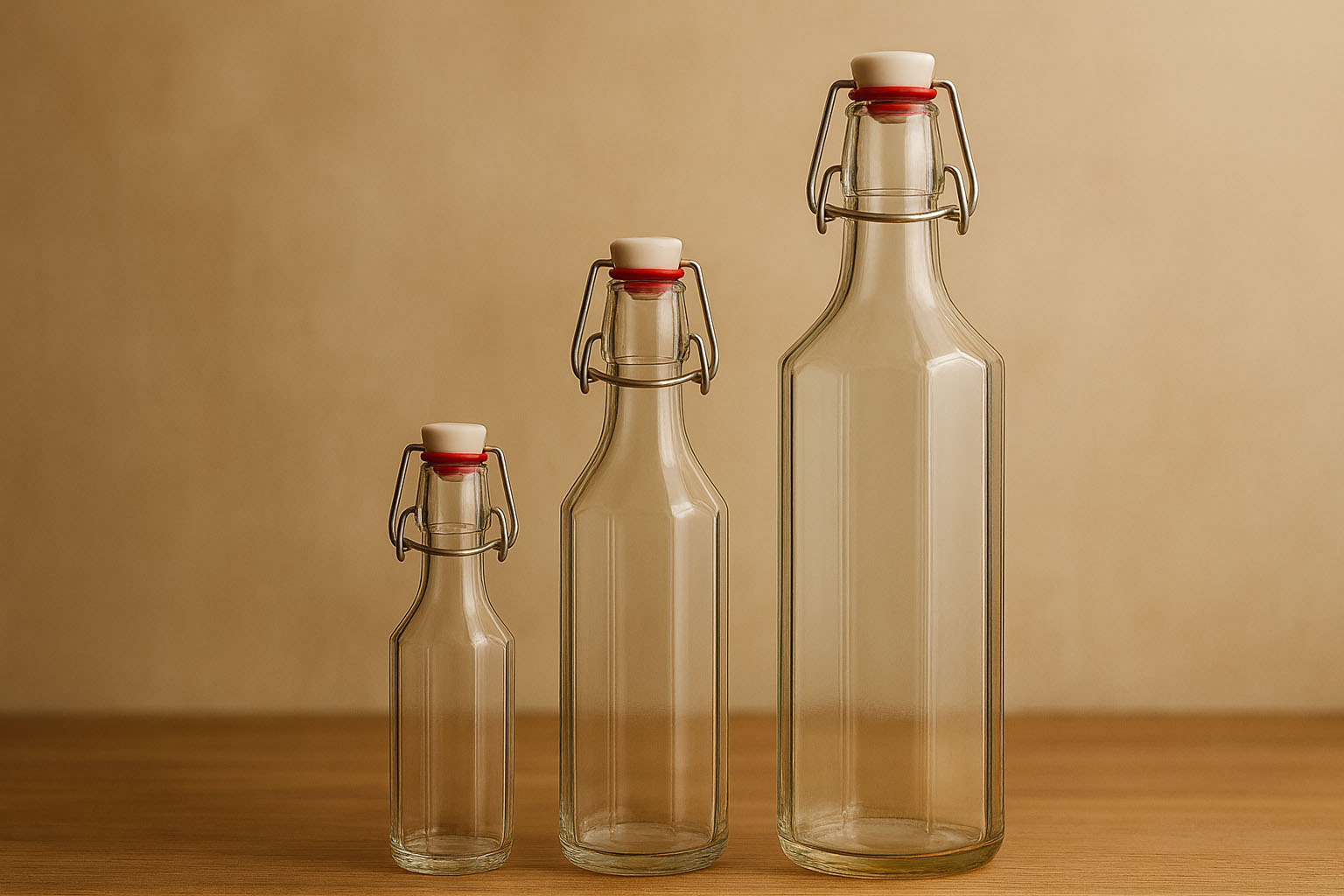 Gota dhe shishe Shishe qelqi 750 ml 'Bravo', tetëkëndëshe, gojë: mbyllje me kapëse.