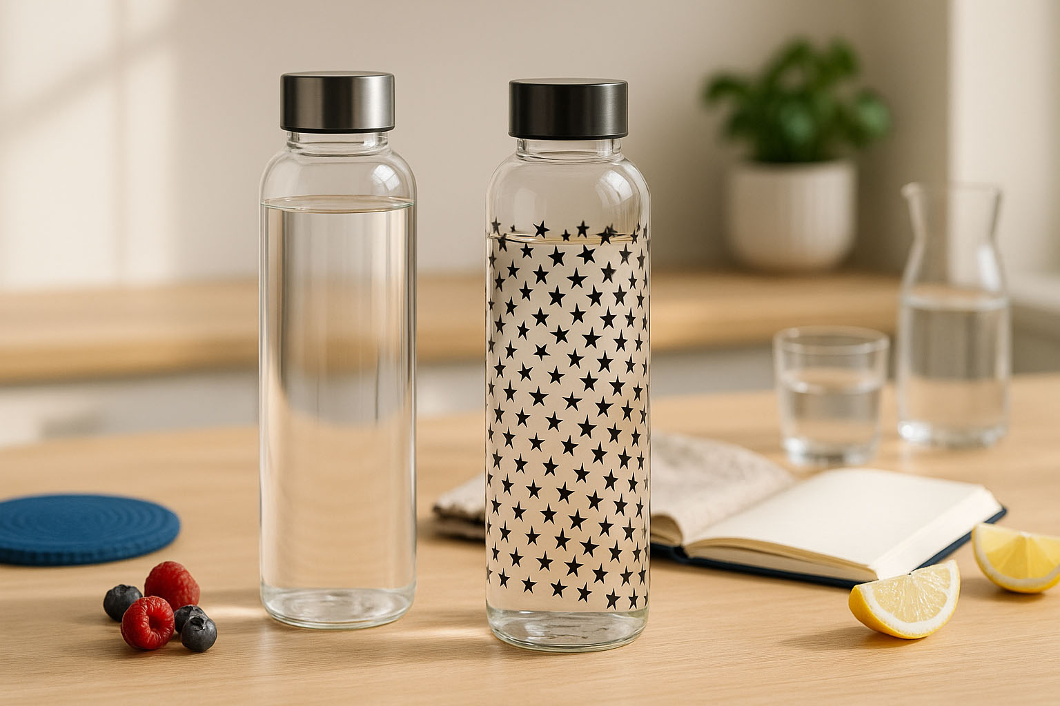 Seria Perseus nga CARRY kombinon cilësinë më të lartë me dizajnin stilor dhe është zgjedhja perfekte për të gjithë ata që vlerësojnë qëndrueshmërinë dhe estetikën në jetën e përditshme. E prodhuar në Gjermani, kjo shishe uji prej qelqi e qëndrueshme tërheq me formën e saj të hollë, cilindrike dhe përpunimin preciz. Gërshërja praktike me vidë siguron një vulë të sigurt – kapakët përkatës janë në dispozicion në gamën tonë. E frymëzuar nga arti modern dhe elementët natyrorë, Perseus ofron një përzgjedhje motivesh unike si lule të holla vjollcë, pika të zeza stilore dhe trekëndësha dinamike turkuaz. Me elegancën e saj të përjetshme dhe prodhimin e qëndrueshëm, seria Perseus vendos një shenjë të qartë për konsum të vetëdijshëm dhe dizajn individual.